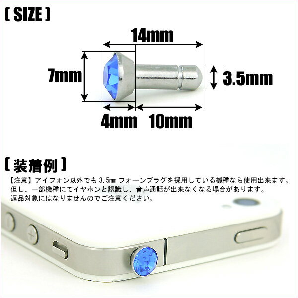 ◆ POINT & SPEC アイフォンなどのスマートフォンやステレオ、ゲーム機などの、イヤホンジャックやステレオジャックなど 3.5mmフォーンジャックに挿し込んでデコるかわいいキラキラアクセサリーが激安価格で登場! クール&スマートな7ミリ1粒タイプ! 男性女性問わずに使えるシンプルデザイン♪
